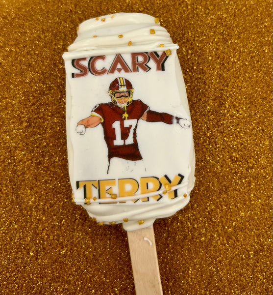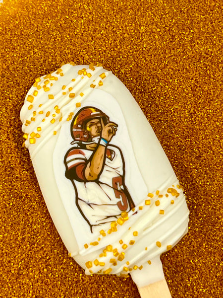 Cake pops shaped like popsicles and dipped in white chocolate. Pick up 01/25 11am-7pm . WE are Closed Sundays